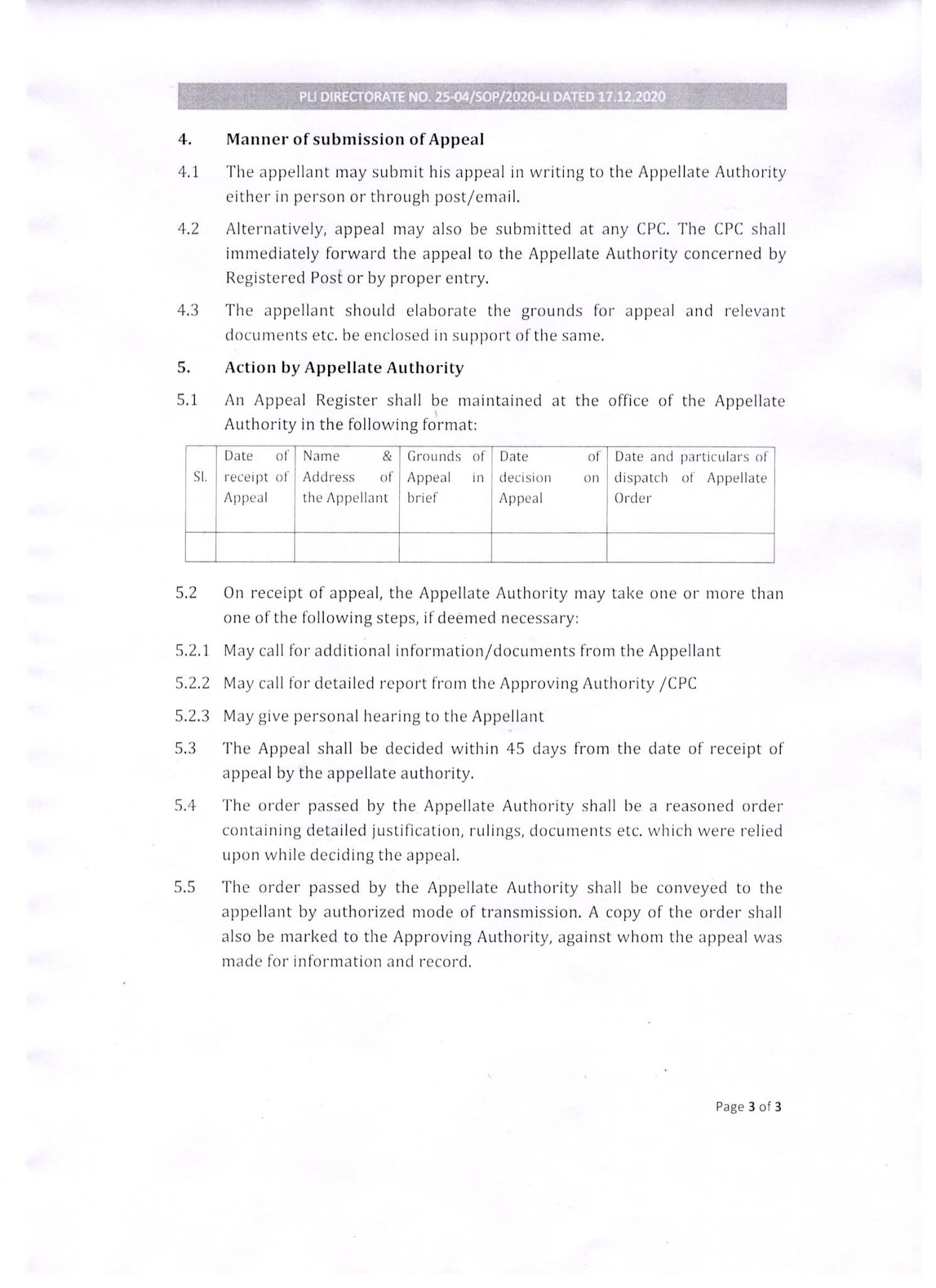 Standard Operating Procedure for Appeal in Postal Life Insurance/Rural Postal Life Insurance Death claim cases.